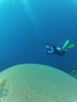 The dive was not without incident and tho it was a minor thing it is an important reminder to not be careless nor non-chalant about these adventures. With a suspect valve on my steel tank i opted not to use it and borrowed a tank from Migration. Well…it is aluminum and if you’re a diver you know the difference in buoyancy of the 2 metals. About ½ way thru the dive I began “fighting” to stay down and the aluminum tank was becoming more buoyant as the air inside was consumed. May have been able to get weight from Alene but instead loaded the pockets of my BC with old, dead and very light pieces of broken coral strewn about in this plateau. Unfortunately there were no heavy rocks and the light chunks sufficed. Simple fix…in the future wear more weight with aluminum tanks…duh.