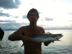 While returning to the anchorage Kent landed a beautiful, perfect sized Waloo…sashimi for dinner again….woot!