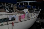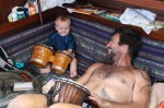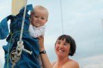 Here are some photos from our first week in Fiji. Riki got the safety netting installed on the boat (thanks to those who gave us that gift!) Wade loves climbing along the boom and up the mast.
