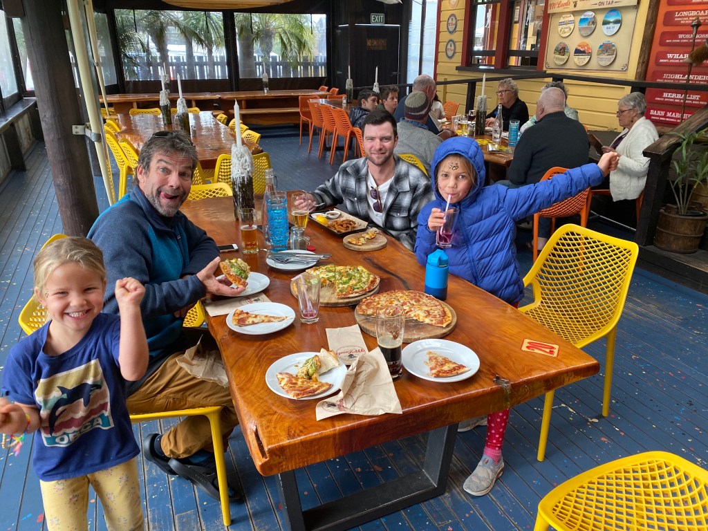 When we arrived in Auckland Tom, who has been looking after our boat, picked us up in a rental van, and drove us the 4 hours north to Opua. This really saved us!! We stopped for pizza en route.