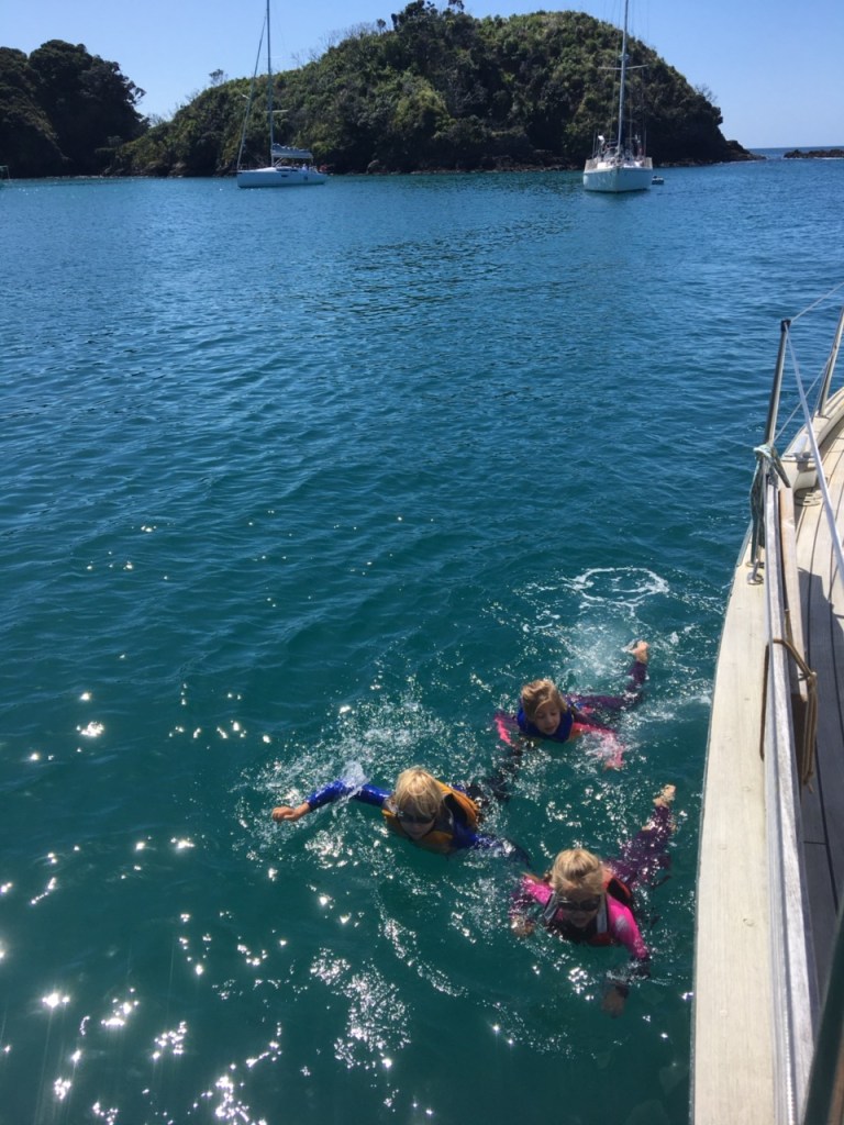 Saturday Riki fixed the anchor windlass (yay!!) while I took the kids to the Maker Space at the public library. Sunday we left to meet up with our friends David, Kate & Tilly on S/V Walrus at Waiwhapuku Bay on Moturua Island.