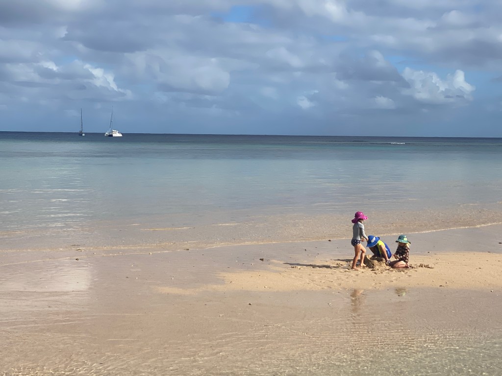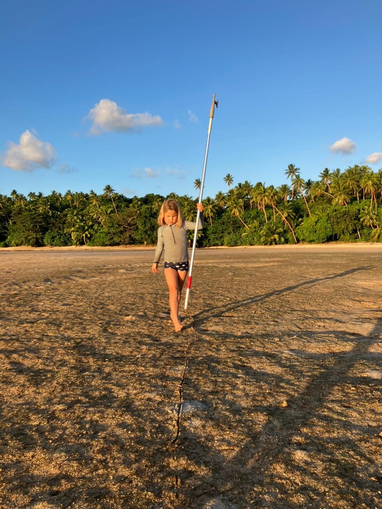 We left the Bay of Islands in Vanua Balavu last Wednesday, together with SV Pangea, heading towards Fulaga in the Southern Lau group. We hoped to arrive the following day in Fulaga, but the wind was too strong (20+ knots) and from the wrong direction (on the nose) so we decided to stop in Lakeba. We anchored outside the reef, at an “indent in the reef” at 8 am on Thursday. Taylor took all the kids to the beach while Brad, Riki and I took naps to recover from the overnighter.