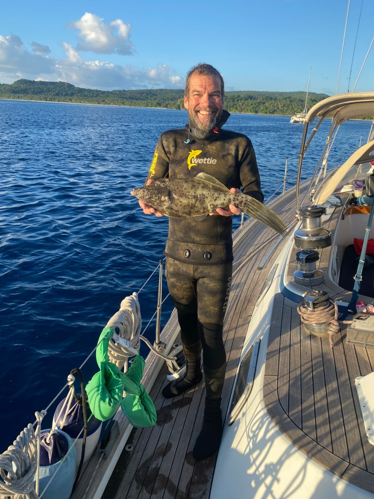 We stayed in Lakeba for 5 days, playing on the beach, snorkeling, spearfishing, and trading off nights hosting each other for dinner. When it was time to say goodbye, it was so hard. We all hugged and cried and hugged again. Taylor gave us each presents. Taylor, Brad & Rex carried on sailing south to Fulaga, and will fly to Hawaii for a visit with Brad’s family. When they return to Fiji, we will be in Vanuatu. We decided to sail back towards Savusavu instead of carrying on to Fulaga because our friends from Tacoma are arriving soon-ish, but mainly because I felt we were running out of food.