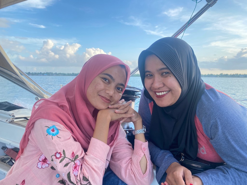 Dinda and Kiky came to the boat that afternoon for a visit.