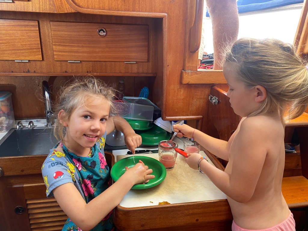 We have been hanging out at this anchorage for 4 days. We started home school again, and have been playing lots of games. We plan to leave tomorrow and head towards Triton Bay, on Papua island.