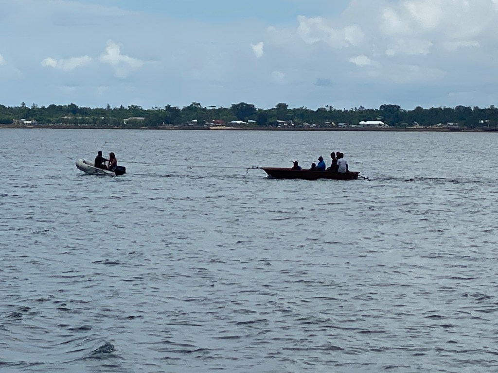Riki, ever the prudent mariner, saw some Indonesians struggling in their boat, so he went to give them a tow.
