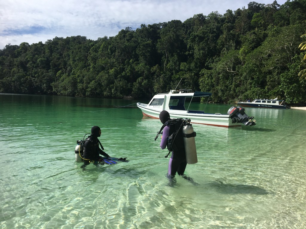 We spent about 10 days exploring different places in Triton Bay. We anchored just north of Triton Bay Divers, and I did a refresher dive course there. I did my PADI course in Savusavu, Fiji in 2012, the summer that Riki and I met, and I hadn’t dove since then. (Oh, and I got Bells Palsy right after that trip — related to the diving? who knows). I was a little nervous for the refresher course — would I be able to clear my ears? My instructor didn’t speak much English, and we instantly went into the water (I had expected some classroom instruction first…). It was fine though. I practiced clearing my mask and retrieving my regulator, then Nino held my hand while we got progressively deeper and he pointed out all kinds of things to me. We saw a Wobbegone Shark (my first!), several nudibranchs, and several shrimp. Our maximum depth was 20 meters.