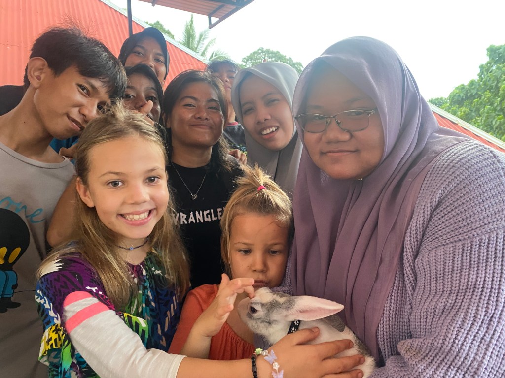 Here is a classic story of how kind Indonesian people are. I was walking away from the marina carrying a big bag of dirty laundry in my arms. I saw a guy on a scooter, and asked him where I could do laundry. He answered, “it’s far”. I asked where I could find a scooter taxi, and he gave the same answer. Then he set his 5 gallon jug of drinking water on the side of the street, and told me he would take me to the laundry place. After I dropped my laundry off, I asked him to stop at a fruit stand so I could get a few things on the way home. The fruit stand vendor was gone, so then we turned around and went back towards the laundry to a different fruit stand. Then he drove me all the way back to the marina. I gave him 50,000 rupiah ($3.33 USD) and a dragonfruit. He protested that it was too much money, and I responded that he’s not a taxi driver, he just took time out of his day to help me out. Imagine someone in the States driving a stranger around to do their errands… A few days later, the kids and I were walking to a fresh water pool in a cave in town. The same man saw me and said, Ana, where are you going? I told him, and he gave us a ride for free. (in two trips).