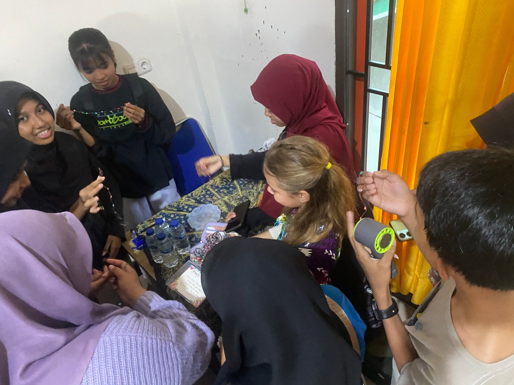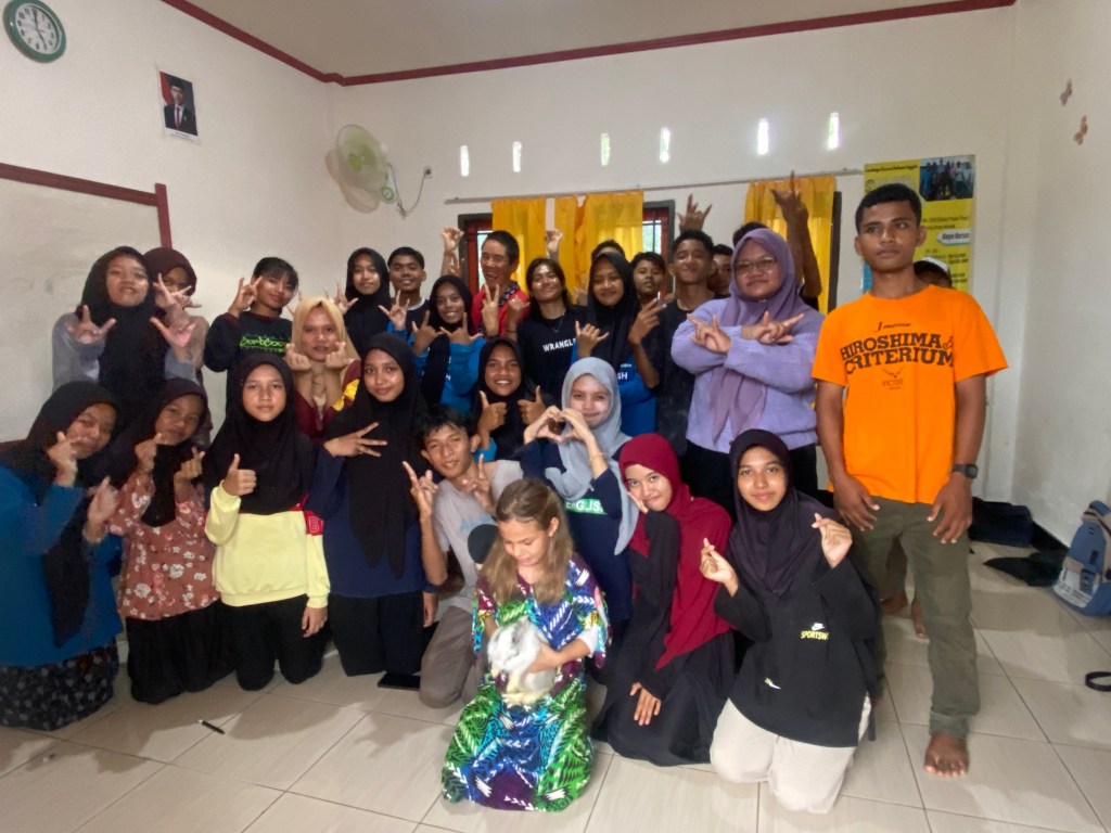 Our friends on Rampetamper made a local friend named Aris in Wangi Wangi, and he came to visit us. He asked if the kids and I would like to teach an English class. I ended up teaching an hour long class using my OWL (Organic World Language) method! It was a lot of fun, and also tiring! (I’m out of practice!)