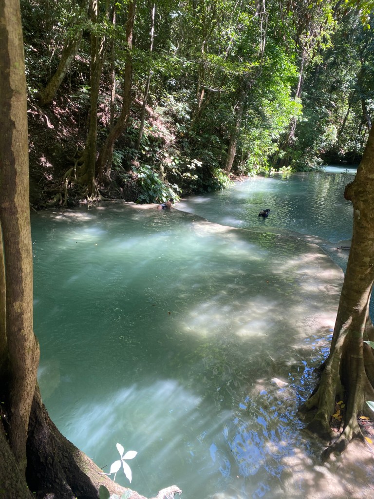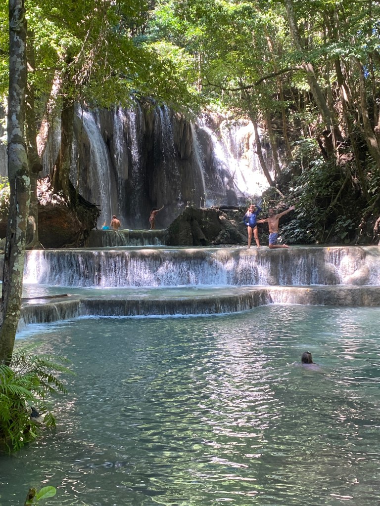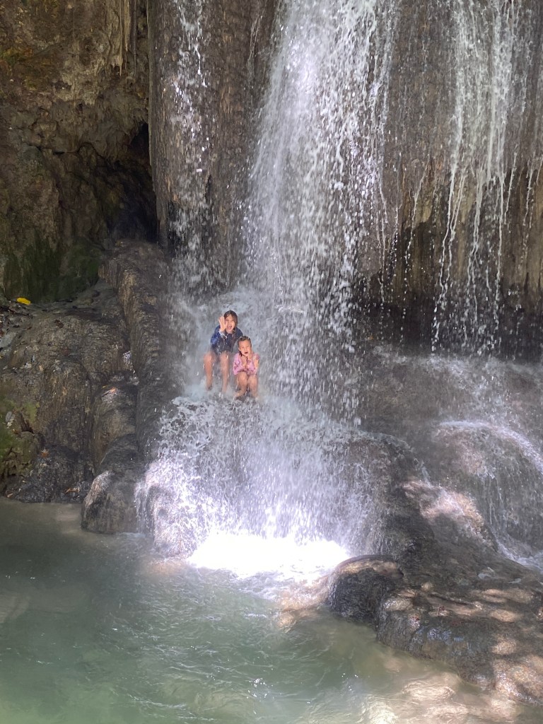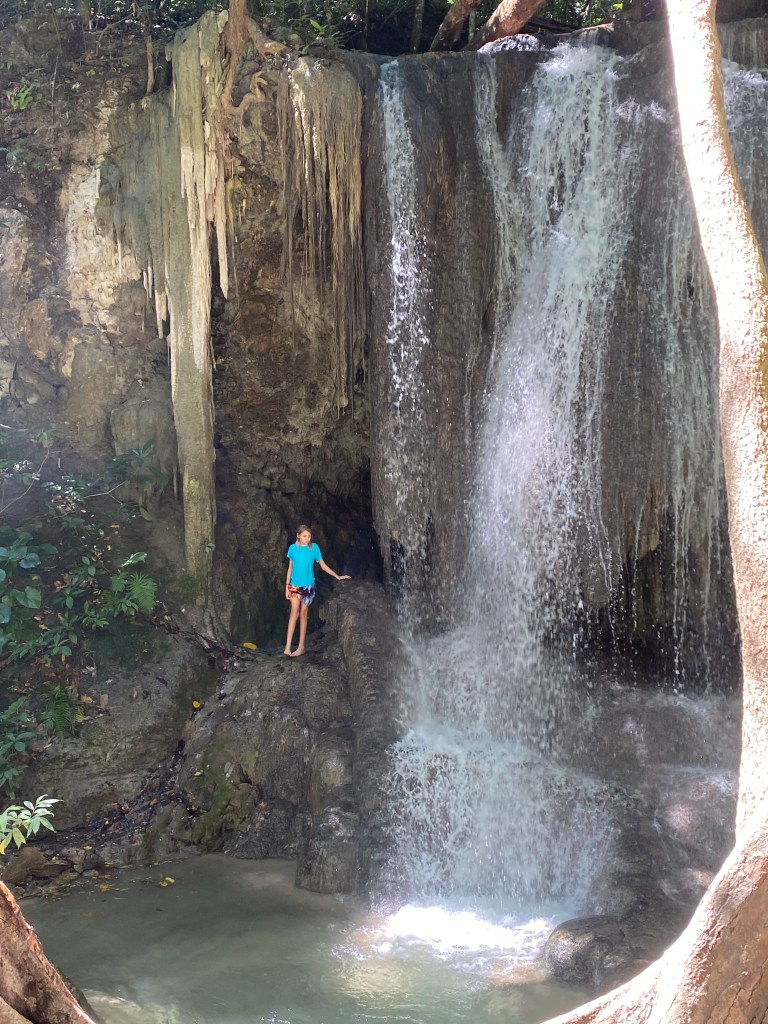 We hiked about 45 minutes to get to the second waterfall. This one had a rope swing off the top! Everyone went off it except me. Too scary!