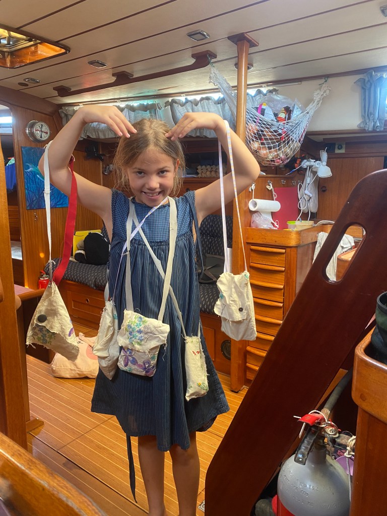 Jade has been making purses lately, with the fabric and embroidery from our friend Melva in NZ.