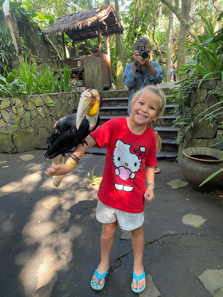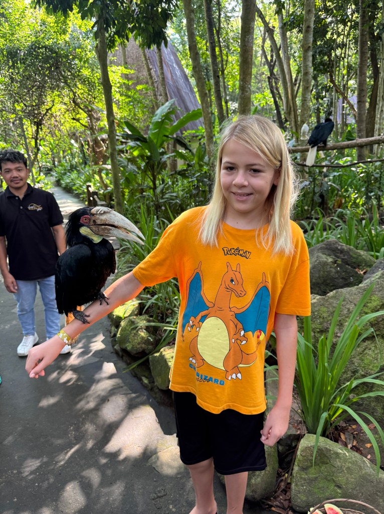 We visited the Lombok Wildlife Park, together with SV Bosuns Mate and SV Tayrona. It was a marvelous day. We got to have a 5 minute interaction with Kiki, a 7 year old female orang-utan. In Indonesian orang means person, and utan means forest. So the orangutans are the people of the forest. It was so amazing to interact with Kiki; however, she was a little unpredictable and could move quite fast. You will see in the video at one point she scared Luz by grabbing for her head. Also, at one point she had her foot, which has an opposable thumb, grabbing the back of Riki’s neck! She liked to play “roly poly” with Riki. Tomu didn’t want to interact with Kiki, so he just watched.