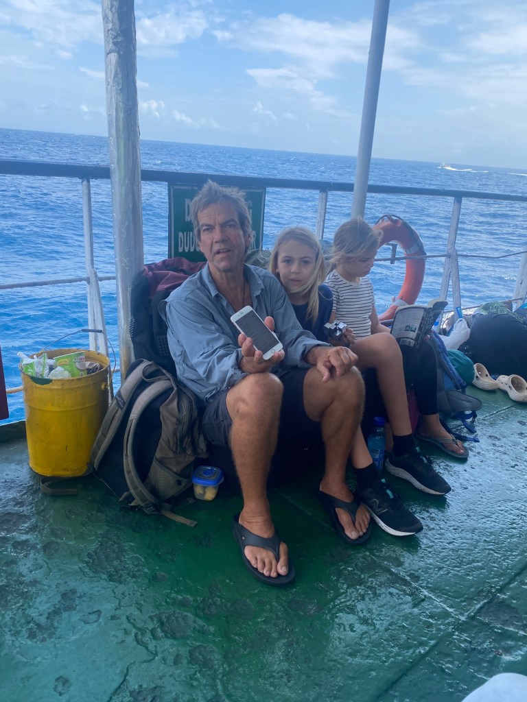 Also, the ferry ride involved an extreme bathroom experience. Jade wanted me to take her to the bathroom. There were three stalls, with a sink in the corner. In order to cross the bathroom to get into a stall, we had to time it and run between the 3 inches of water that was sloshing back and forth as the ferry swayed in the waves. This water came overflowing from the stalls, because in this predominantly Muslim country, people don’t use TP, they use water and their left hand to wash after using the toilet. Also, while we were making a dash for it, a woman was throwing up into the bathroom sink.