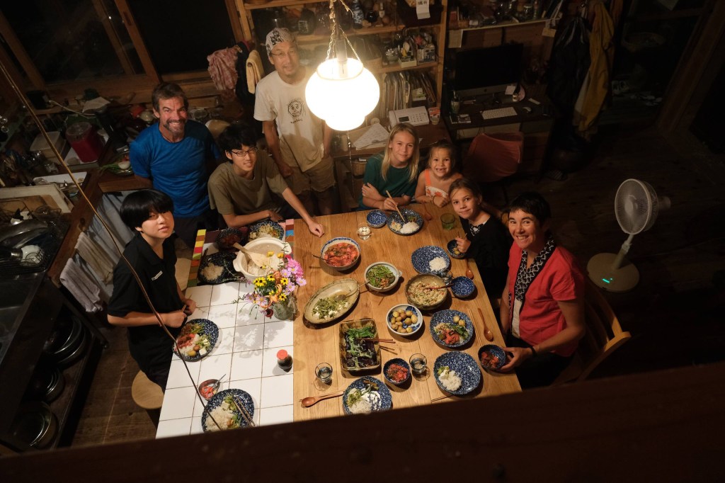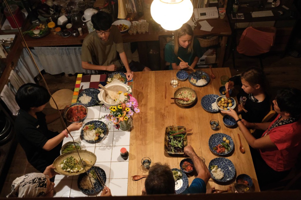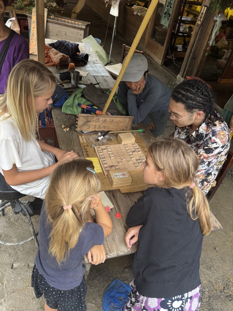 And in the middle of our trip we visited Yumie, Harufumi, and their children Hikari and Amane at their Airbnb Haruya Guesthouse in the mountains outside of Kyoto. Our friend Maki had recommended that we visit their Airbnb, and it was the highlight of our trip to Japan. We took a train and two buses from Kyoto to arrive at their place. They have a magnificent garden. Our visit coincided with a hippie festival called Yamauto where Tomu learned to play shogi, Japanese chess. We shared a delicious vegan meal of several courses with our hosts and stayed up late playing music, playing shogi, and drawing. I went on a few hikes in the forest. Luz and I separately discovered hiru, or leeches that live in the forest, on our feet. That wasn’t too fun. We loved seeing rural Japan — so different from the big bustling cities.
