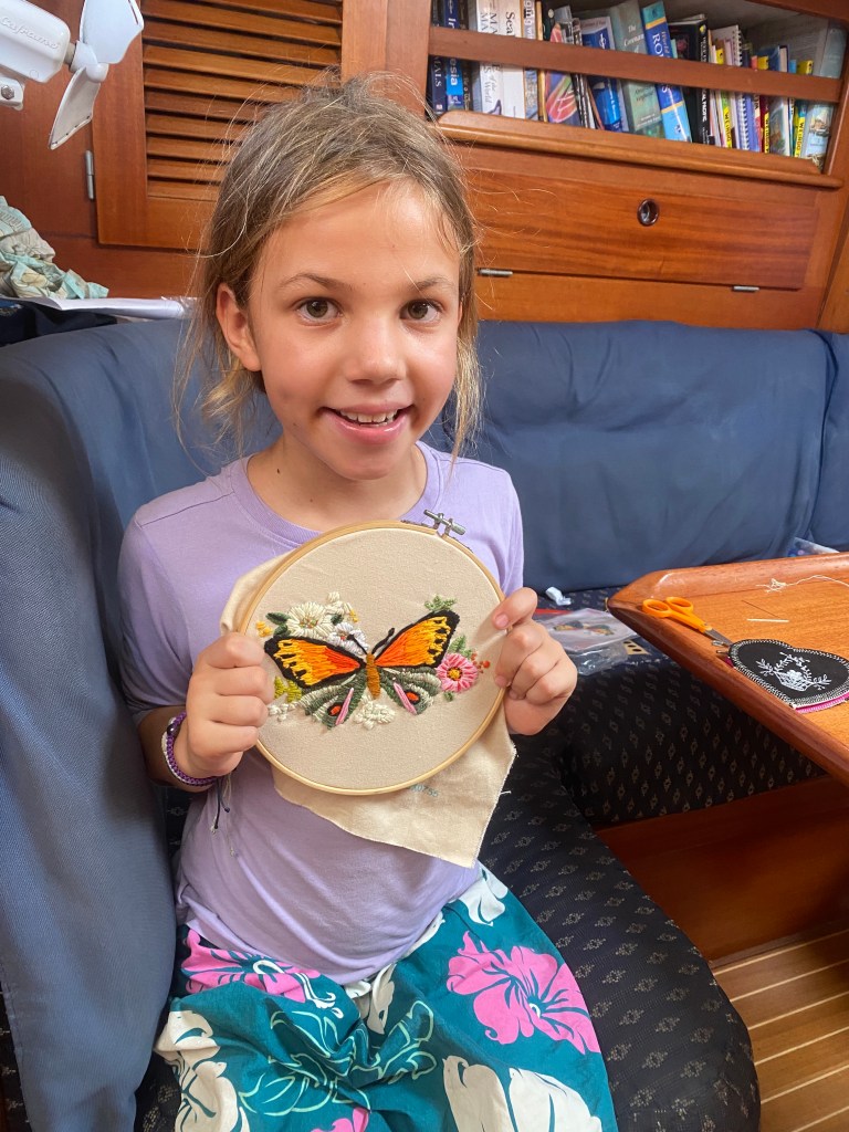 We had a rough passage from Kumai, Borneo to Belitung. It took us 48 hours: it involved 2 sick children and Riki hand-steering for 3 hours in the dark because the autopilot couldn’t handle the wind direction/wave combo. Both Jade and Luz recovered after the first night but it’s hard parenting sick kids at sea.