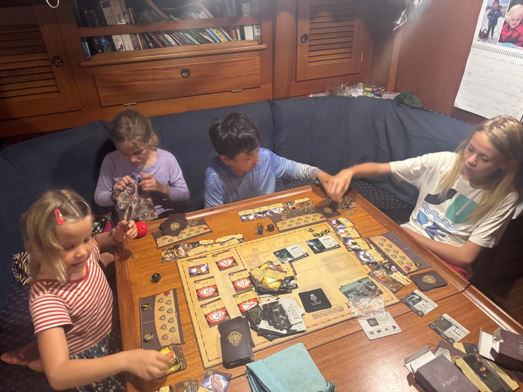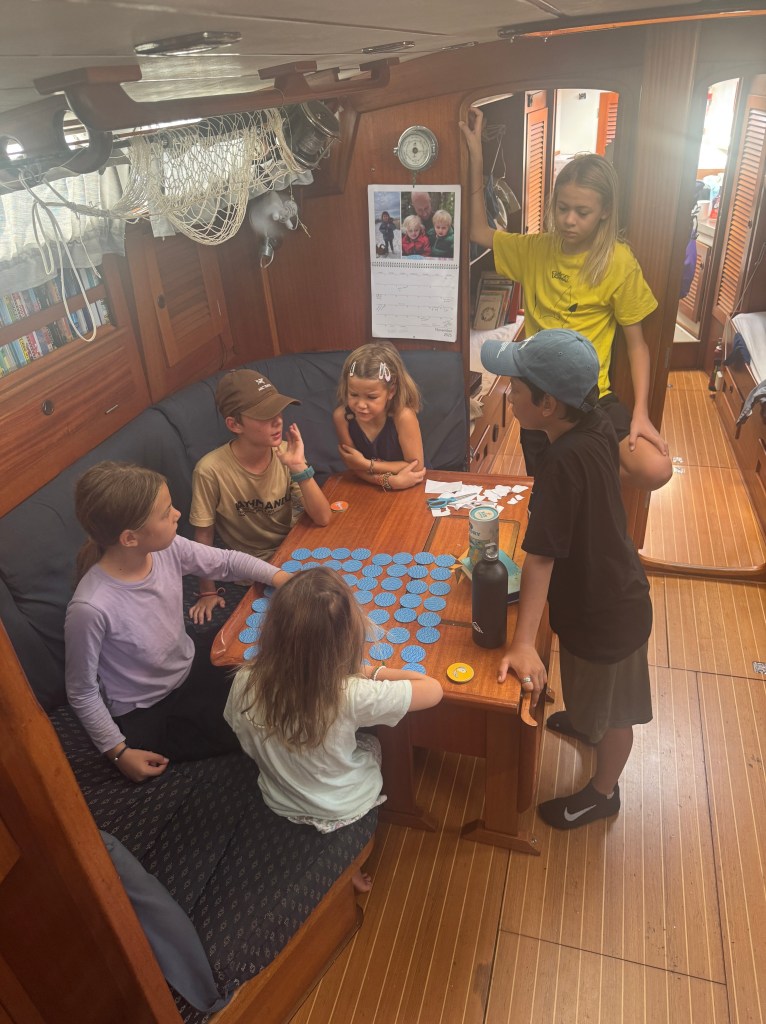 The dynamic of 5 people spending the majority of their time together, for 2 years, in a few square meter space… it will be noticeable when one of those bodies are gone for almost 2 weeks, especially when it’s mama! We have fallen into a groove onboard and Han bears the task of most of the homeschooling and almost all the food planning/cooking/shopping. So I think the kiddos thought we might starve and have a 2 week school vacation. Not so, we managed to maintain body weight and stimulate some brain cells in her absence. That being said, there is no replacing what she does for us and we are forever grateful, missed her dearly and are so happy to have her back on board!