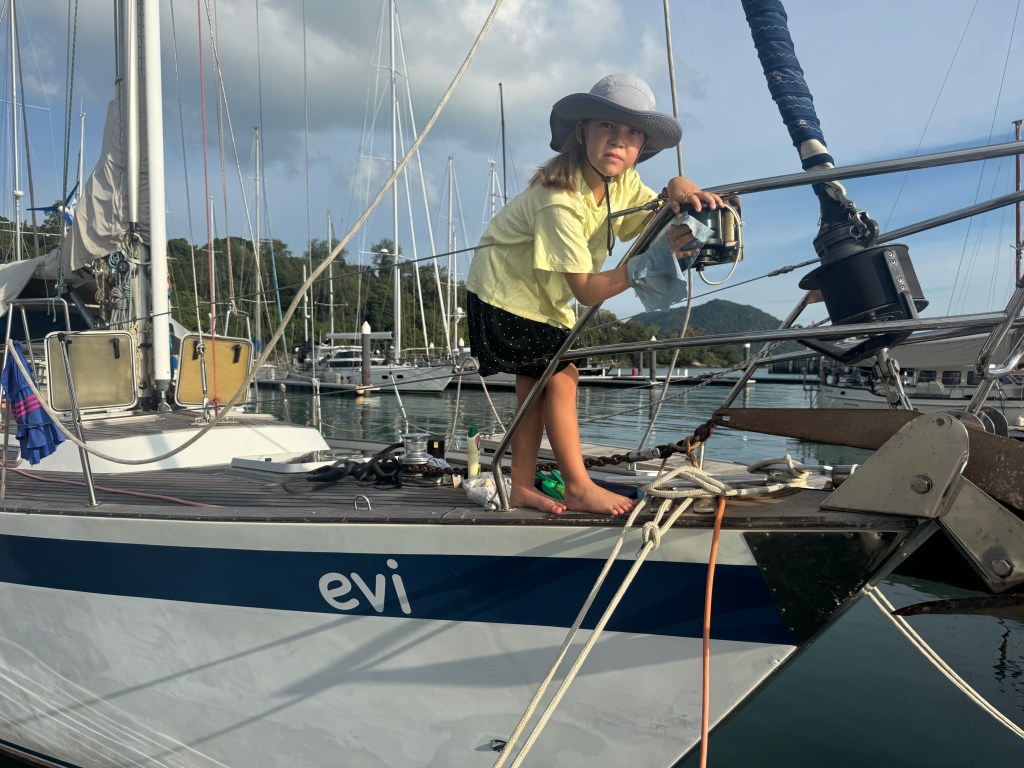 I had grand plans to get evi out of the marina and explore some surrounding islands for a few days while Han was gone. We could swim with some sea life, have some beach time, do some boat chores at anchor and rejuvenate our souls but alas, it just didn’t happen. Mostly the kiddos wanted to stay and reap the rewards of many ‘kid boats’ in the marina, including their regular playmate, Vetle, directly across the dock on Escape. I admit, it is convenient and I felt a little guilty for not breaking away, so we had a good time at Royal Langkawi Yacht Club.