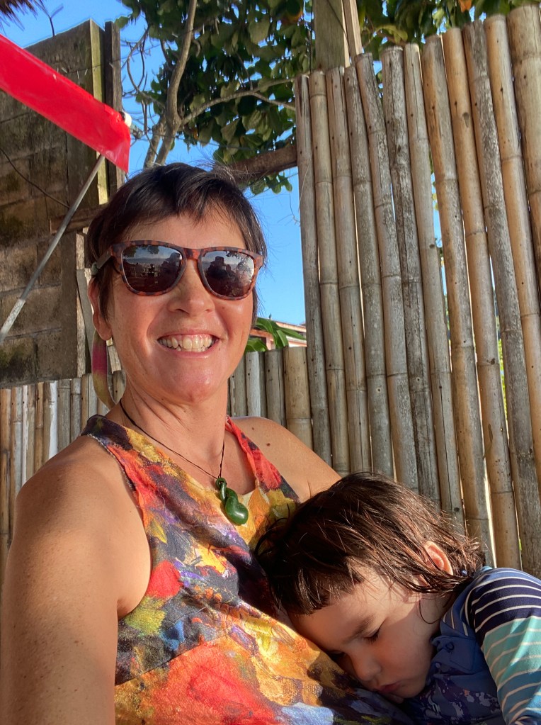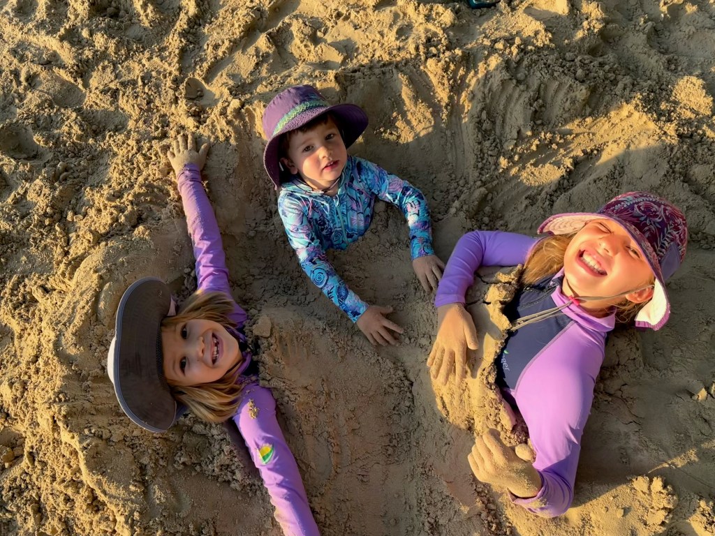 My brother Weston, his partner Justine, and their two kiddos Jasper (age 3.5) and Mira (age 23 months) arrived to Phuket on Saturday, three days after we did. I went to pick them up at the airport, and we arrived back to the beach by evi just at sunset.