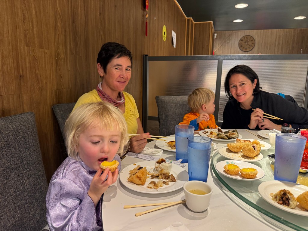 It started with in a stressful manner when my domestic flight from Langkawi to Kuala Lumpur was delayed by an hour. The agent who checked me in raised her eyebrows when I said, “but I’ll still make my international flight, right?” On the short plane ride, I devised a plan to make my international flight (the first of three international flights: Kuala Lumpur to Doha, Qatar, then to Seattle, then to Lihue, Kauai). I decided to abandon my backpacking pack in the baggage claim carousel because I didn’t have time to wait for it. I texted my mom and sister Libby a list of clothes I would need to borrow for our backpacking trip on the Na’pali Coast Trail. I hoped that the airline would find my bag and keep it for me, but in the end, I thought: experiences are more important than things. So I ran for it. I ran to the train connecting the two terminals, and got to the check-in counter with 30 minutes before it closed. The immigration line was extremely long and slow, and I made my flight during the “final call for boarding”. Qatar Airways had free WiFi, which I used to email the AirAsia lost baggage folks. They confirmed that they had my backpack and would keep it until I returned 12 days later. Whew! I slept in a sleep capsule in the Doha Airport, then continued to Seattle. In Seattle, Mom picked me up, and we met Libby, Celeste and Julian for dim sum at Jade Garden. Mmmmm, delicious!