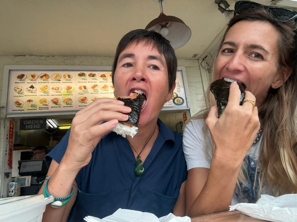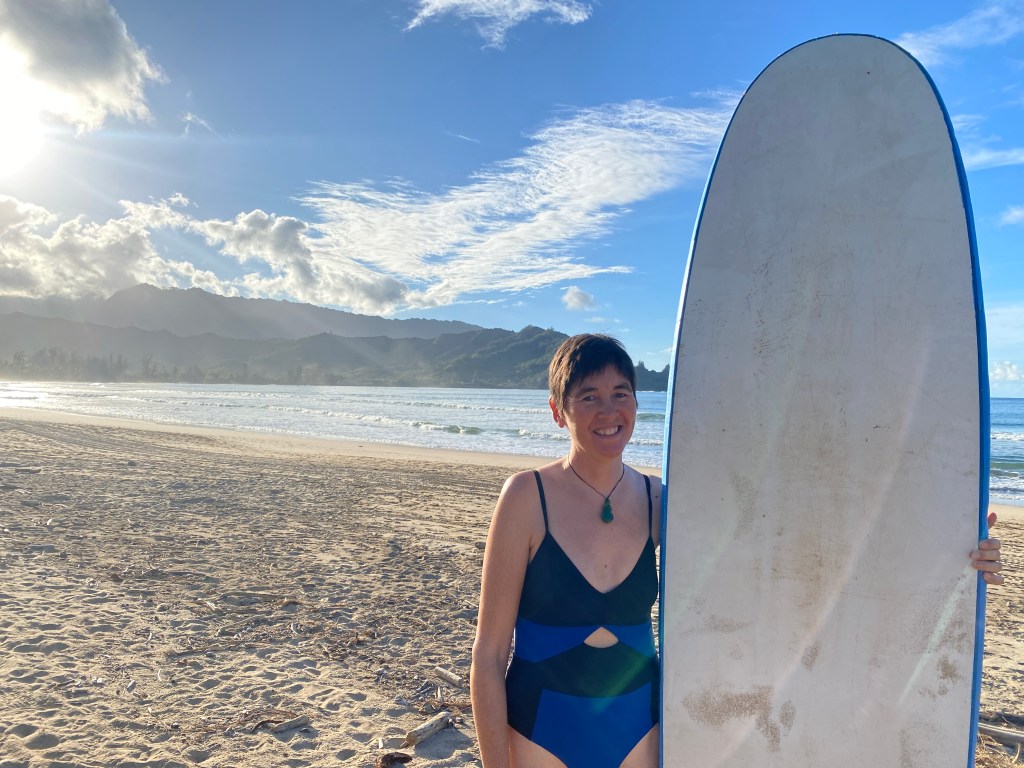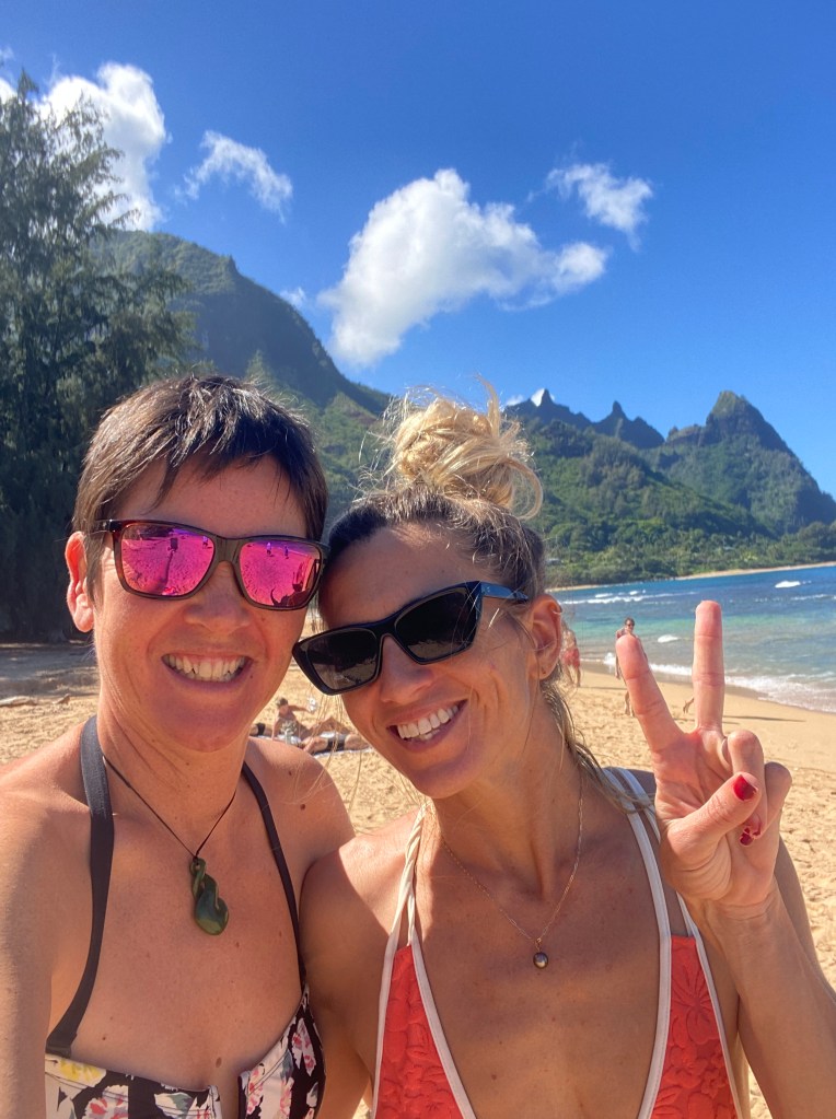 Taylor is my bonafide mermaid friend. She’s a spear fisher, surfer, free diver, wing foiler, artist, kid magnet, and chef. She’s also humble, kind, funny, and generous. When we parted ways in Fiji last summer, we both cried, along with Luz. We had been talking about trekking in Nepal for her 40th…then she decided she’d rather her friends come visit her in Kauai. I’d never been to Hawai’i before, and I was so excited to get to see her home and life there.