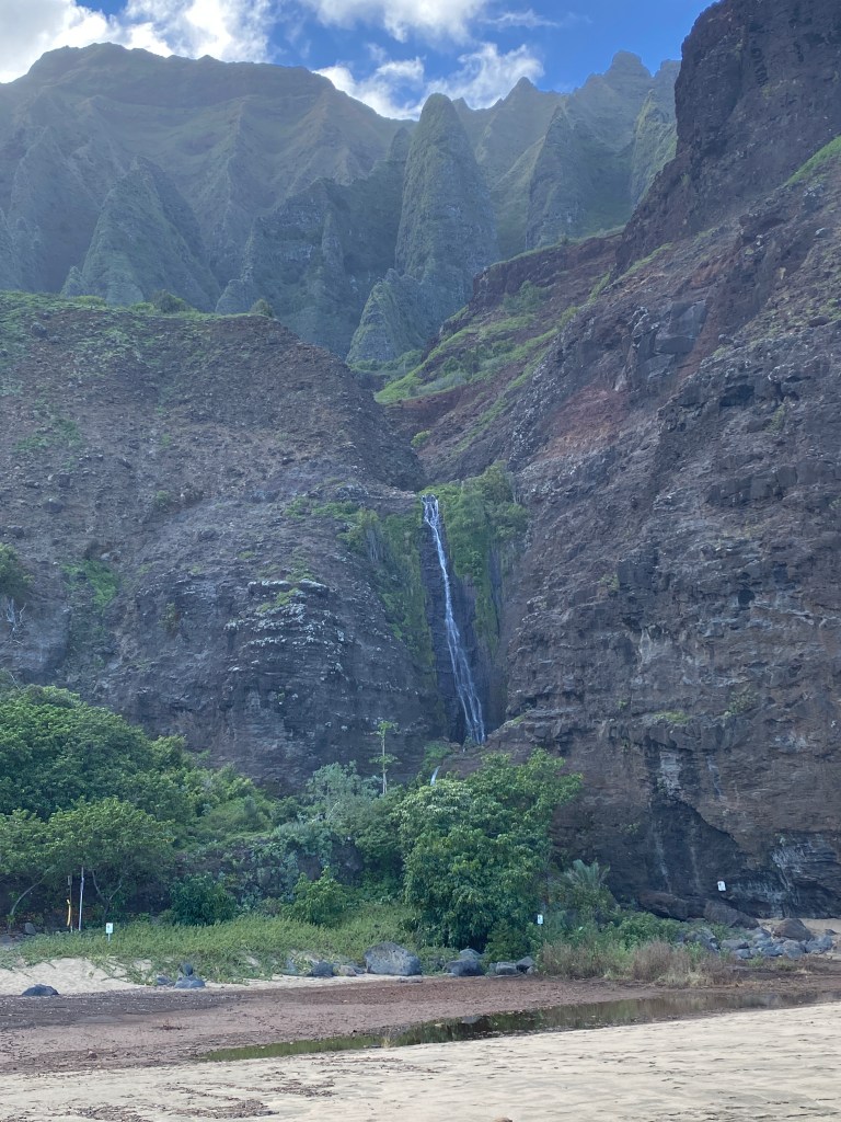 Kalalau is a magical place. The water source for the campsites is a waterfall with a small pool at its base! There are so many steep ridges on the mountainsides rising up behind the beach.
