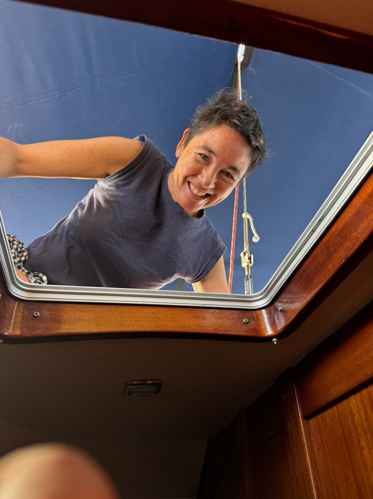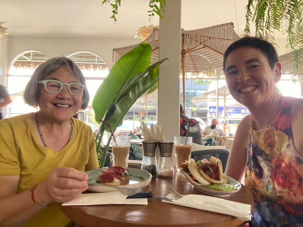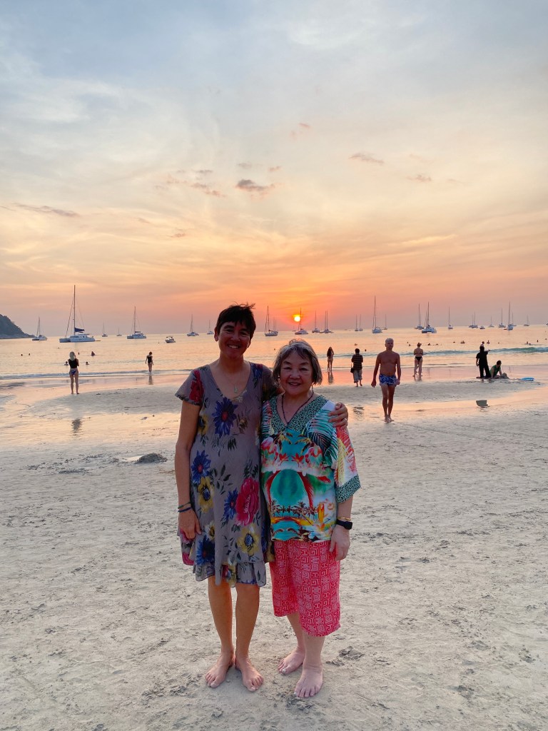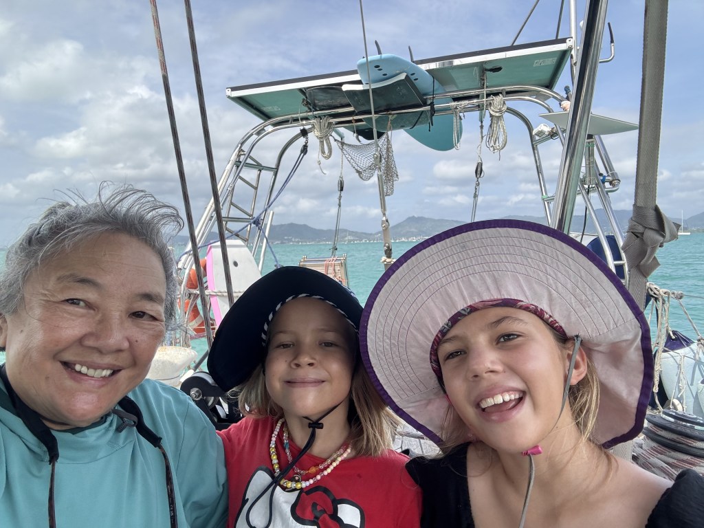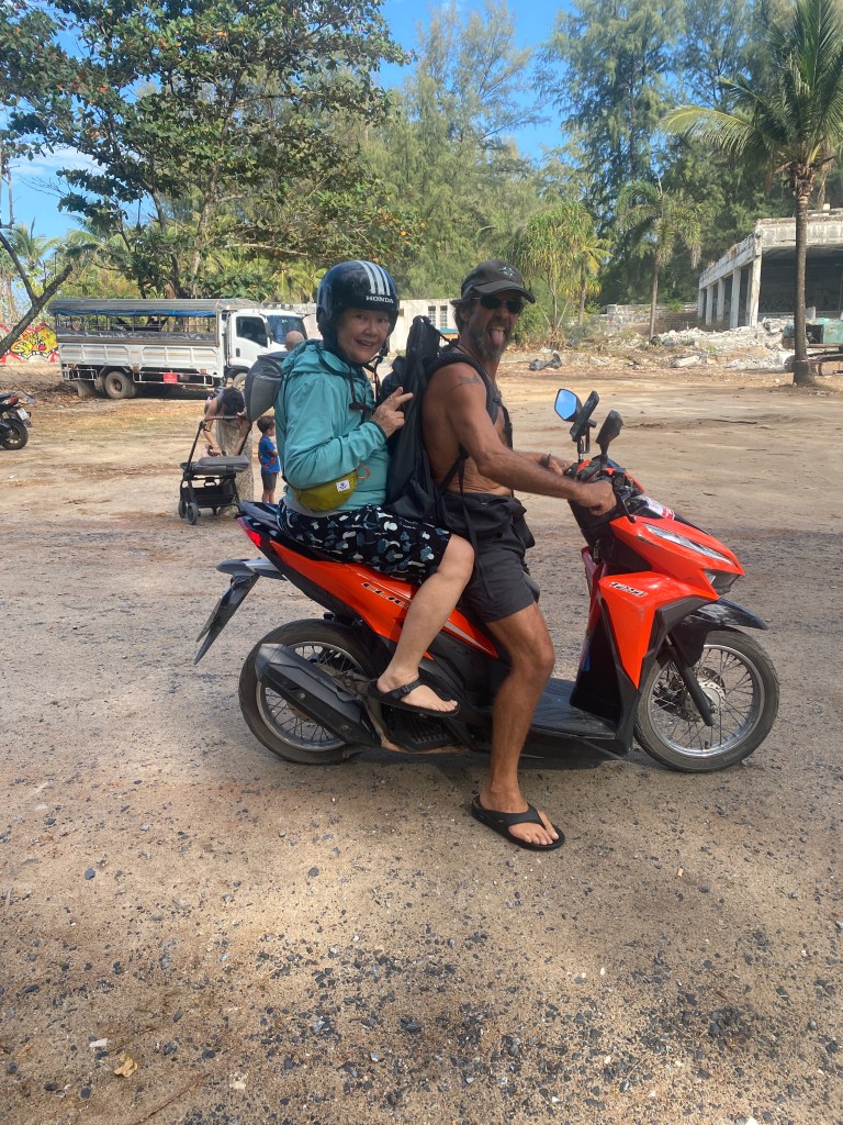 Ma Chin arrived to Phuket on January 22nd, 2026. So far she has come to visit us once a year on sv evi. This time I drove a rental car in Phuket traffic to pick her up at the airport. It took 5 hours round trip — whew! We had planned to go out to the Similan and Surin islands for some world-class snorkeling, but then our alternator seized up leaving Nai Harn Bay. Smoke filled the engine room, and there was a horrible clacking sound. We sailed back into Nai Harn Bay, with some dinghy assistance for the last mile from SV Kagou and our dinghy Pentapus. Riki diagnosed the problem and set about sourcing a new alternator….it took longer than we expected with many bumps in the road, but Riki persevered in the end! Go chief engineer Riki!