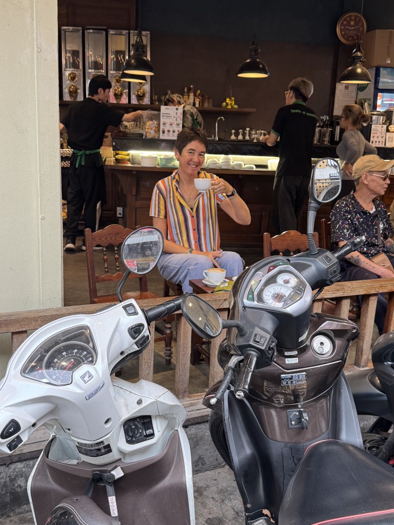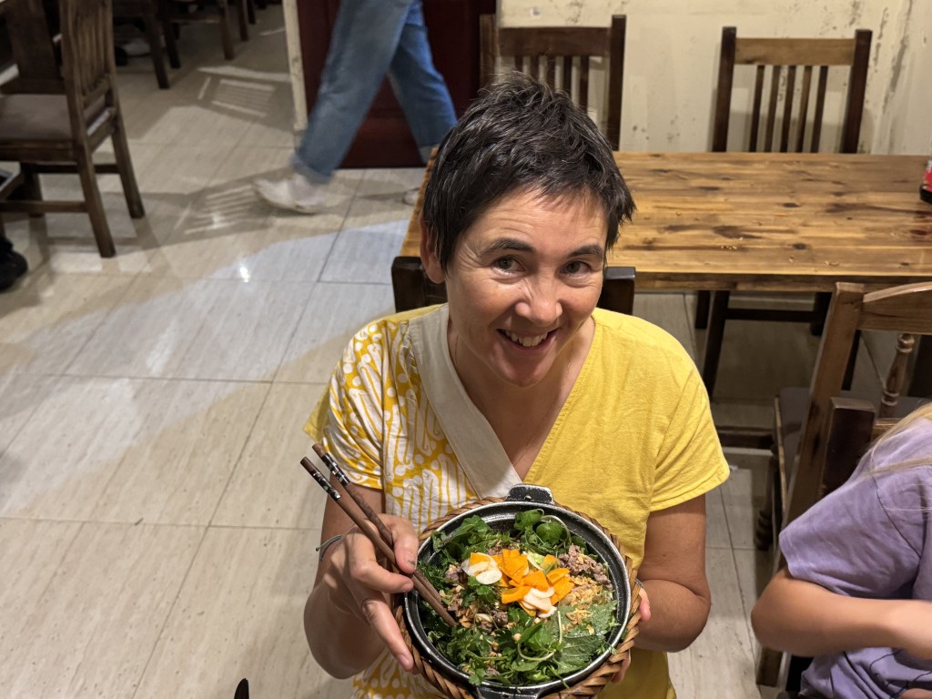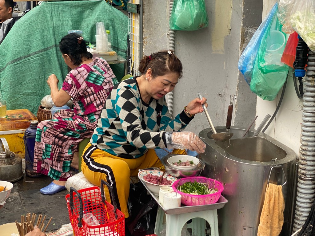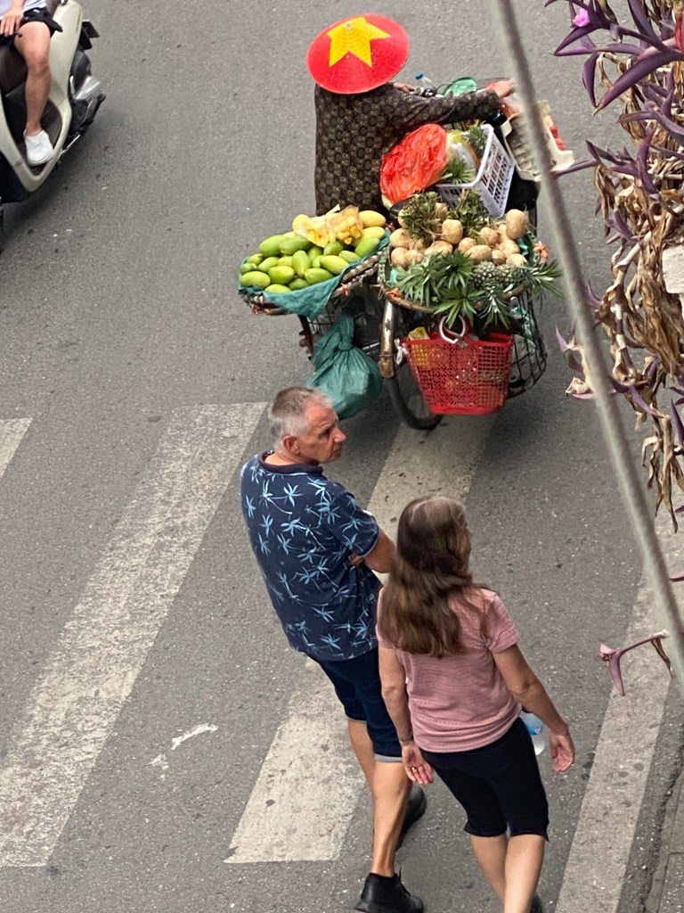 In Hanoi we had an Airbnb in the Old French Quarter — there was so much happening there all the time. Cars, scooters, pedicabs, and pedestrians all in the narrow streets with no sidewalks. I was surprised by how much of life happened on the street in Hanoi: people chopped meat, cooked pho for breakfast, sold vegetables…