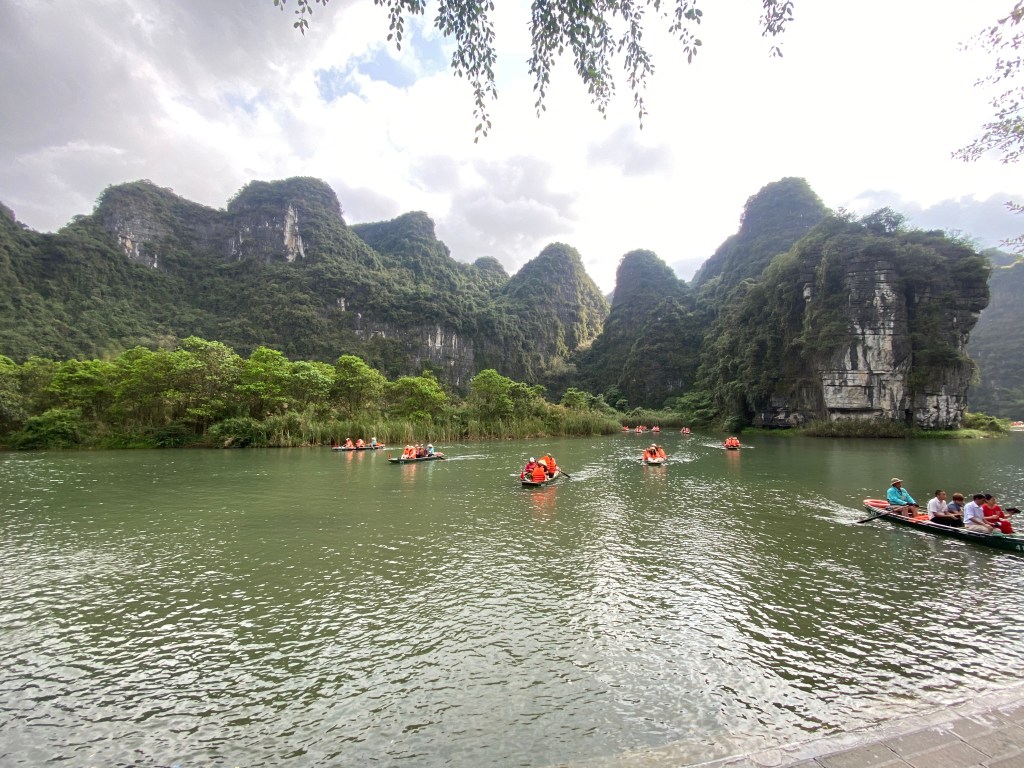 We went to Tam Coc on Thu’s recommendation, in order to visit the Trang An UNESCO World Heritage site. We visited Trang An early on a Sunday morning. We didn’t have to wait in line long, but there were so many people! Most of the other tourists were Vietnamese. We got rowed around for two hours, amongst limestone karst cliffs and temples, through long caves. It was gorgeous.